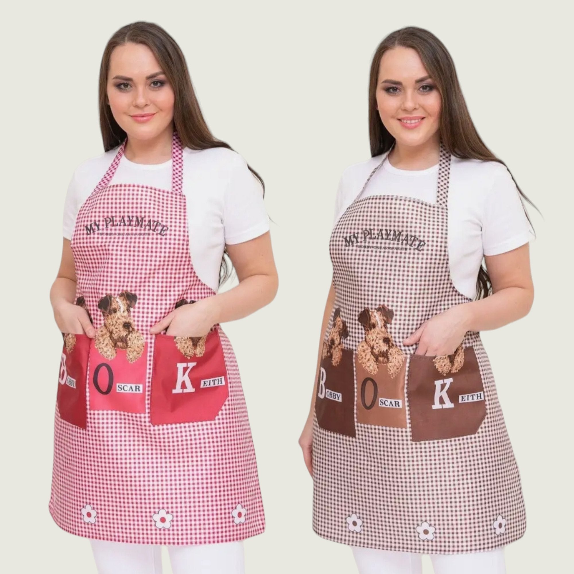 🍽️ Dizajn s motivom psa: Dodajte šarm u kuhinju s pregačom koja ima neodoljivi pseći motiv i praktične ušivene džepove.