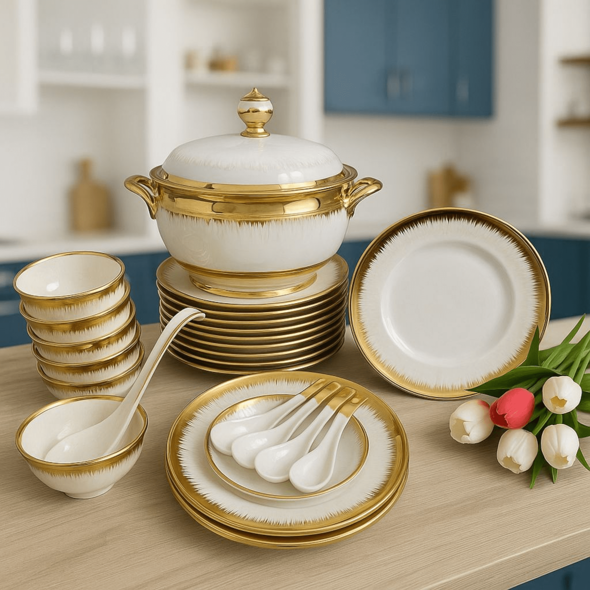🍲 Kompletan set: Od velike zdjele za supu do tanjira za desert, imate sve što vam treba za upečatljiv obrok.