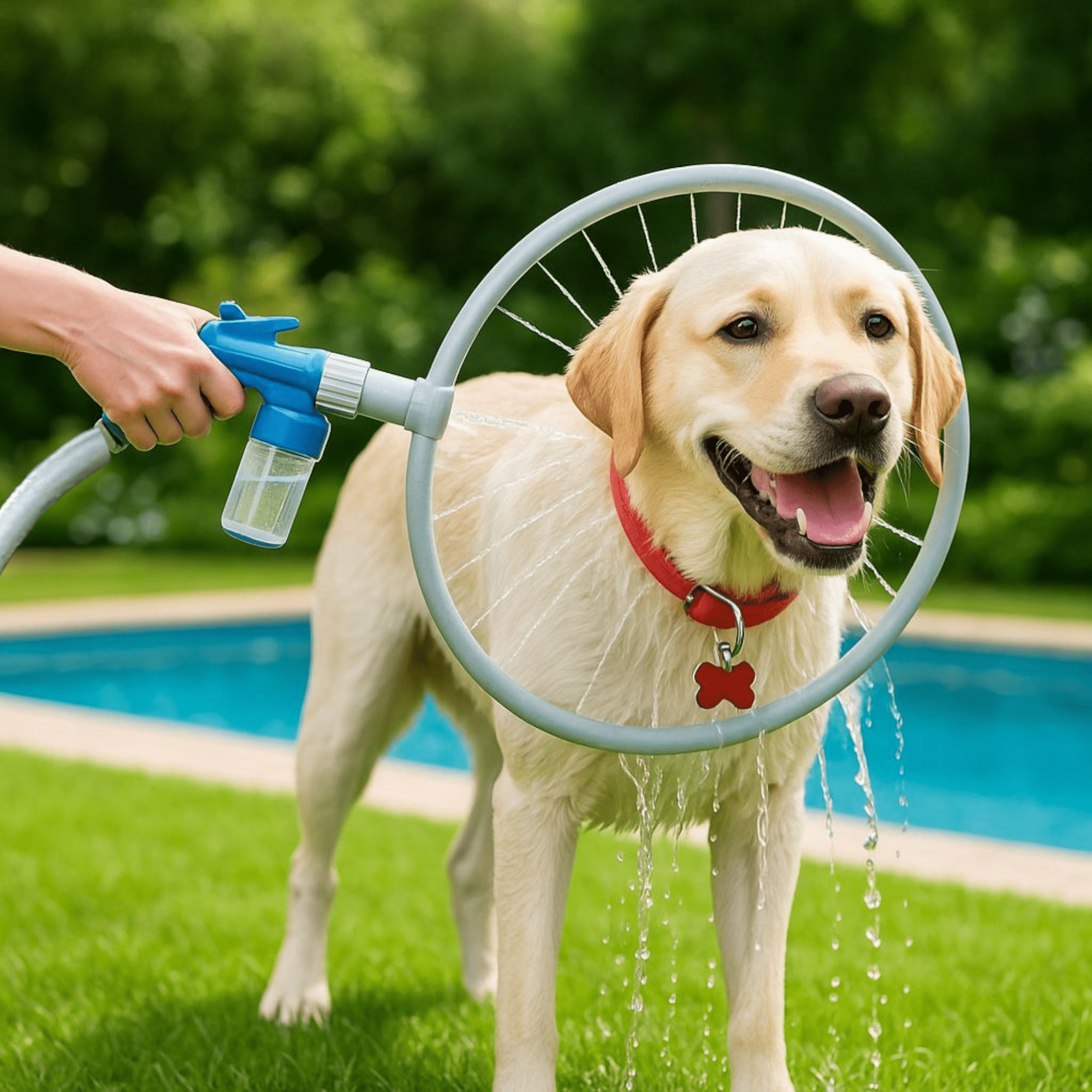 🌀 360° sistem tuširanja: Ovaj obruč ravnomjerno raspršuje vodu i šampon kako bi temeljito očistio krzno vašeg psa od glave do šapa.