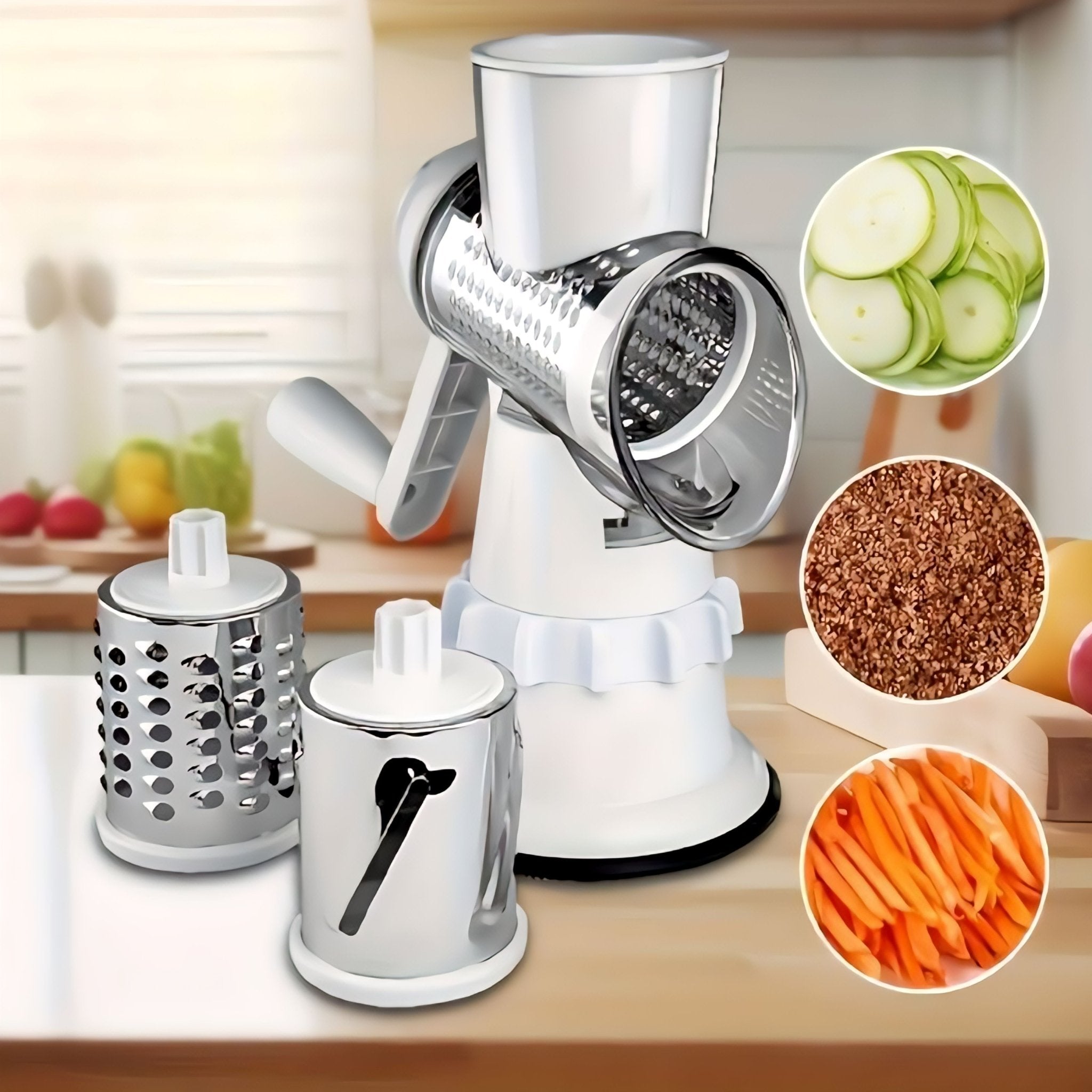 🥕 Tri praktična nastavka – S lakoćom rendajte, režete i sjeckajte razne namirnice: povrće, sir, orašaste plodove i još mnogo toga.