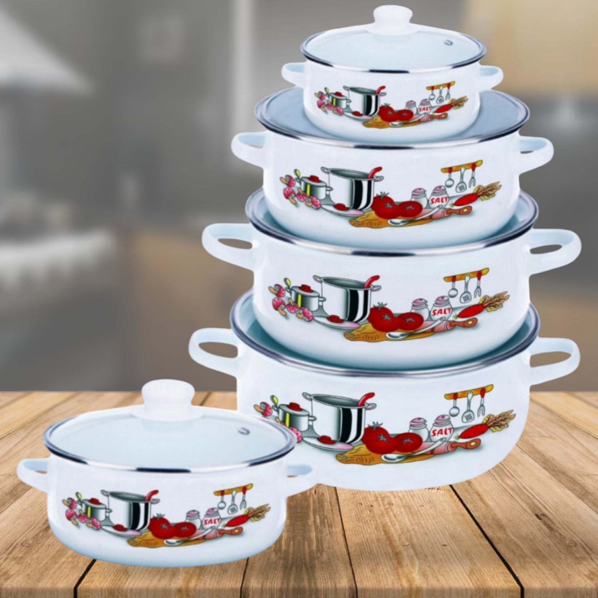 Prepustite se čaroliji kuhinje s našim 5-dijelnim setom emajliranih šerpi koje unose eleganciju i funkcionalnost u vaša jela.
