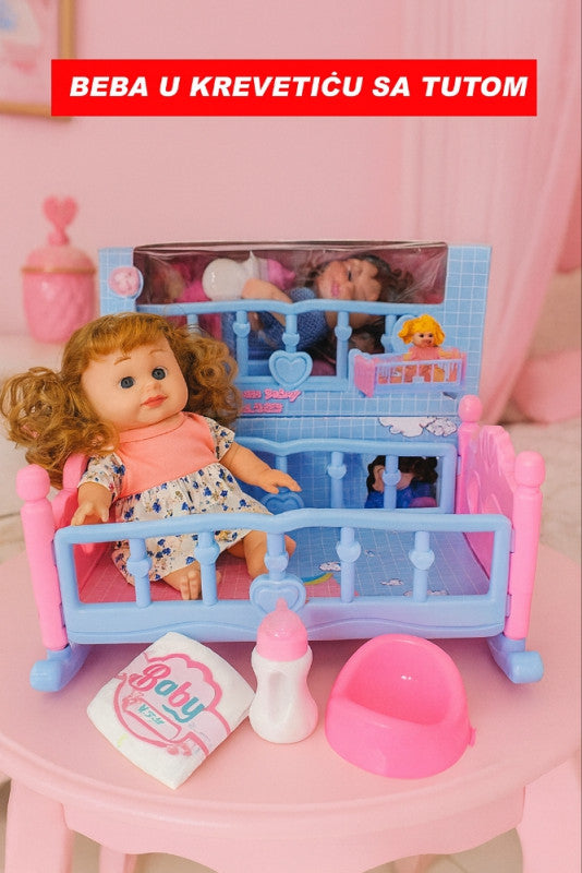 👶 Beba u krevetiću sa tutom – komplet za njegu i igru!