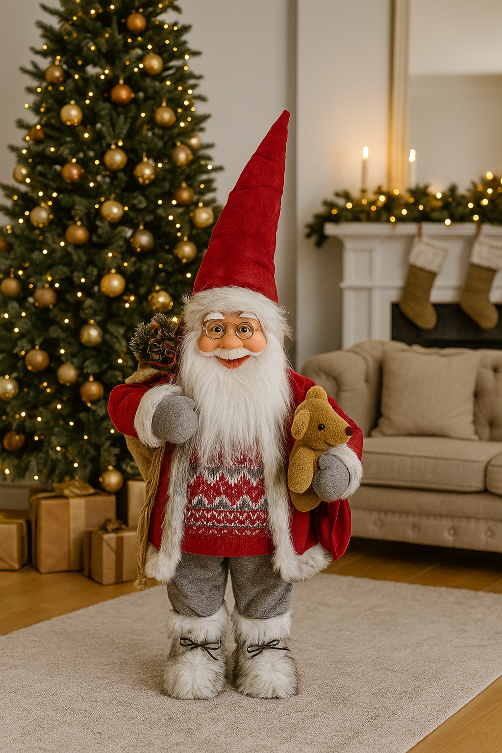 Unesite prazničnu toplinu i magiju u svoj dom uz velikog Djeda Mraza visine 60 cm.
