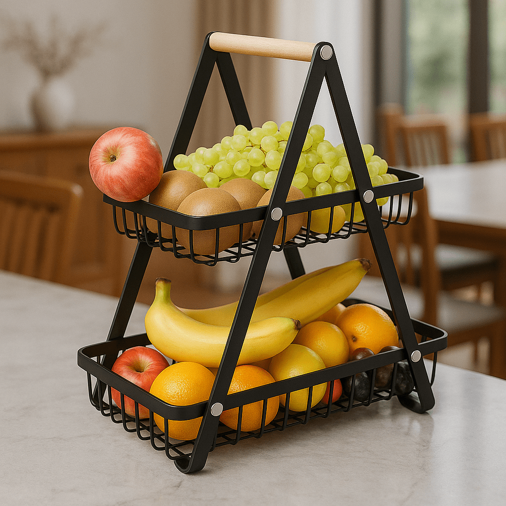 Uvedite organizaciju vašeg prostora s ovom elegantnom etažnom korpom za voće i povrće, koja spaja stil i funkcionalnost!