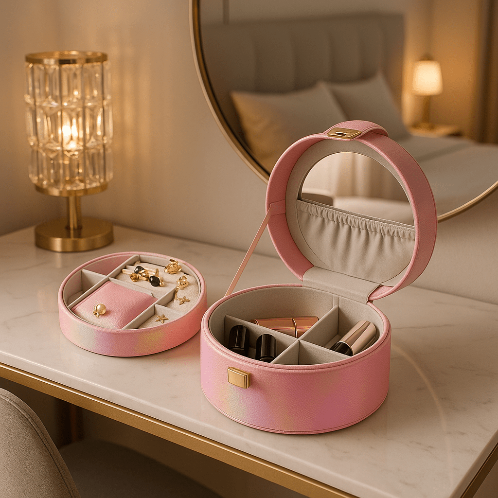 💎 Prostran unutrašnji prostor – Sa velikim kapacitetom, nosite sve omiljene komade nakita i šminke u jednoj praktičnoj kutiji.