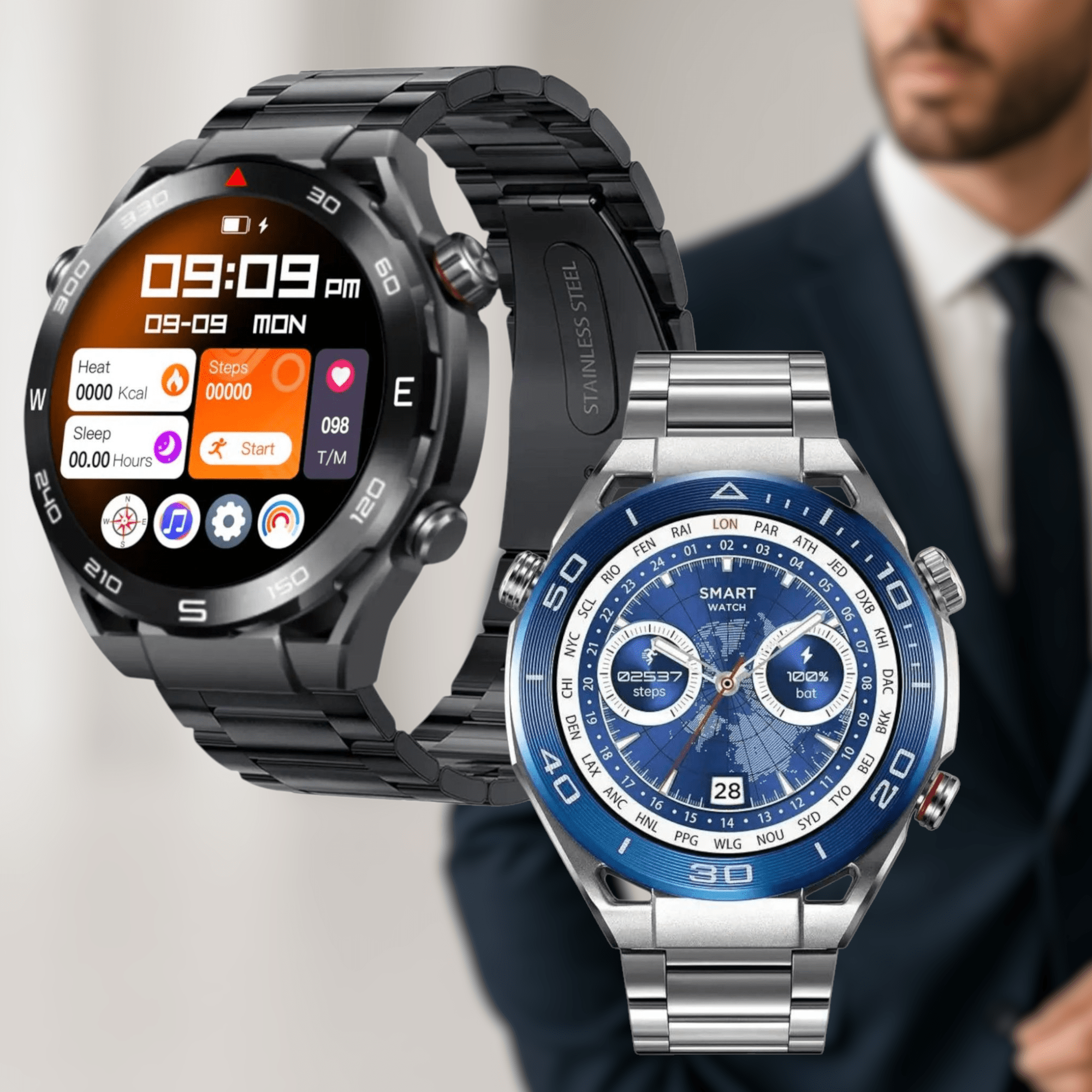 🕒 Prilagodljiv dizajn – Uživajte u dvije narukvice: elegantnoj metalnoj za posebne prilike i udobnoj gumenoj za svakodnevno nošenje.