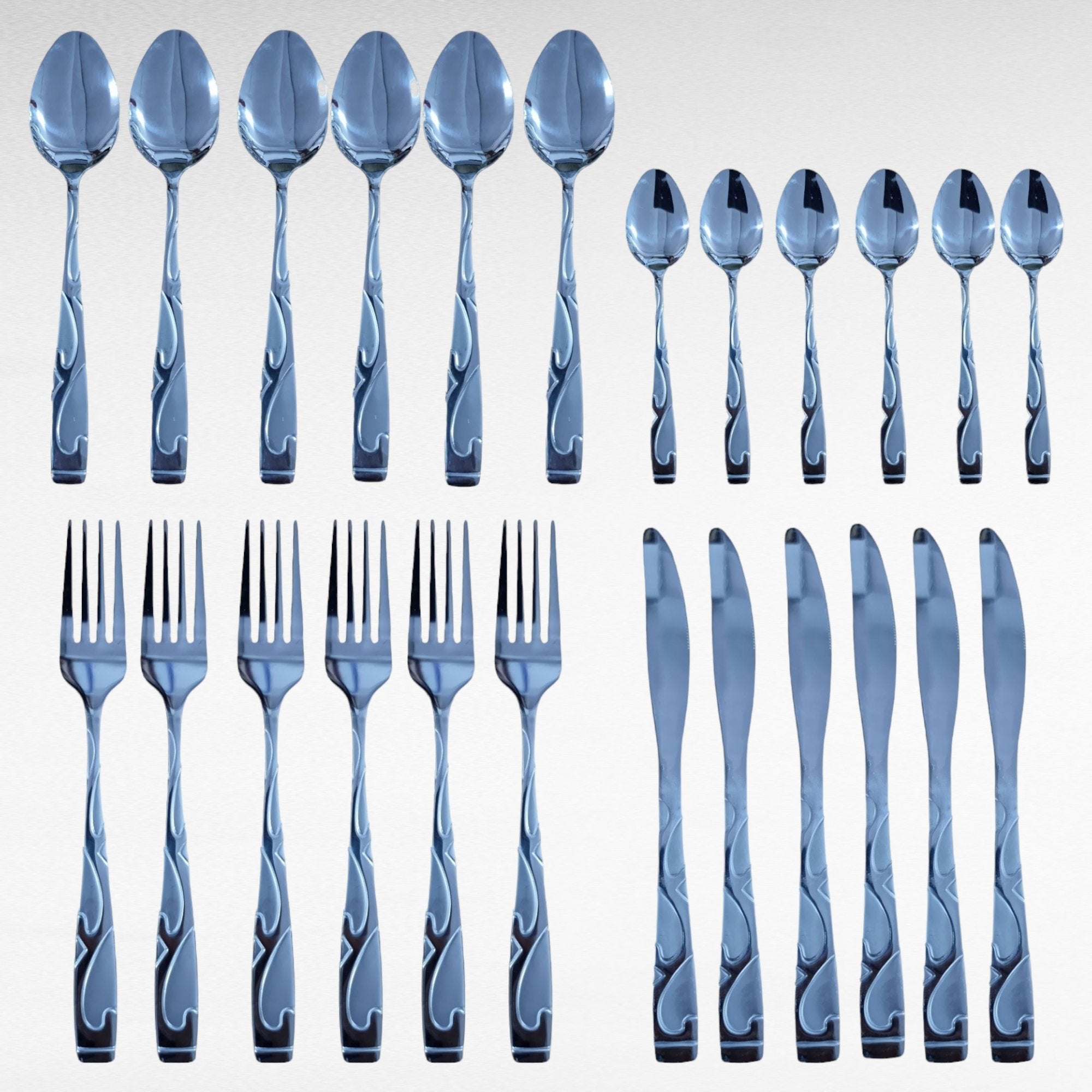 Unesite eleganciju i praktičnost u vašu kuhinju s našim 24-dijelnim setom pribora za jelo. Idealan za svaki obiteljski obrok.
